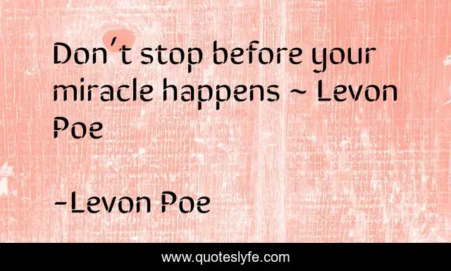 This page presents the quote "Don’t stop before your miracle happens ~ Levon Poe". Author of this quote is Levon Poe. .