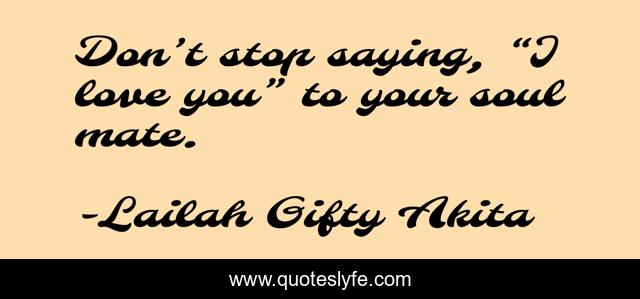 This page presents the quote "Don’t stop saying, “I love you” to your soul mate.". Author of this quote is Lailah Gifty Akita. This quote is about inspiring, love, soulmate, affection,.