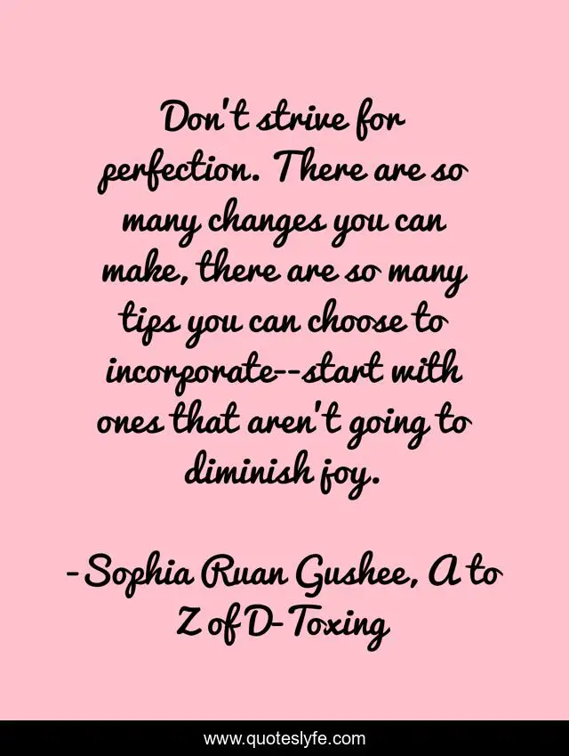 "Sophia Ruan Gushee, A to Z of D-Toxing Quotes." Quoteslyfe.com, 2025. Fri. 05 Dec. 2025. <https://www.quoteslyfe.com/quote/Don-t-strive-for-perfection-There-are-172426>.