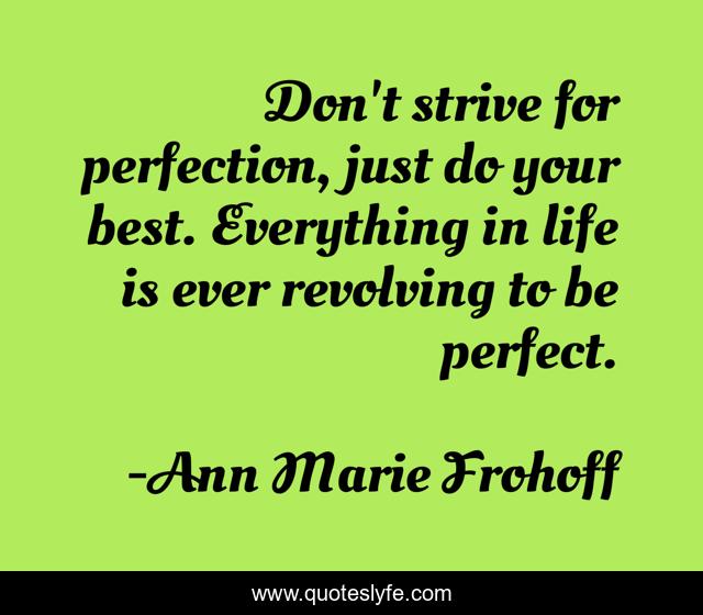 This page presents the quote "Don't strive for perfection, just do your best. Everything in life is ever revolving to be perfect.". Author of this quote is Ann Marie Frohoff. This quote is about wise-words, romance-author, young-adult-romance, tumblr, inspirational, self-help, enthusiasm, inspiration,.