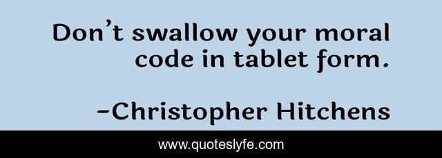 This page presents the quote "Don’t swallow your moral code in tablet form.". Author of this quote is Christopher Hitchens. .