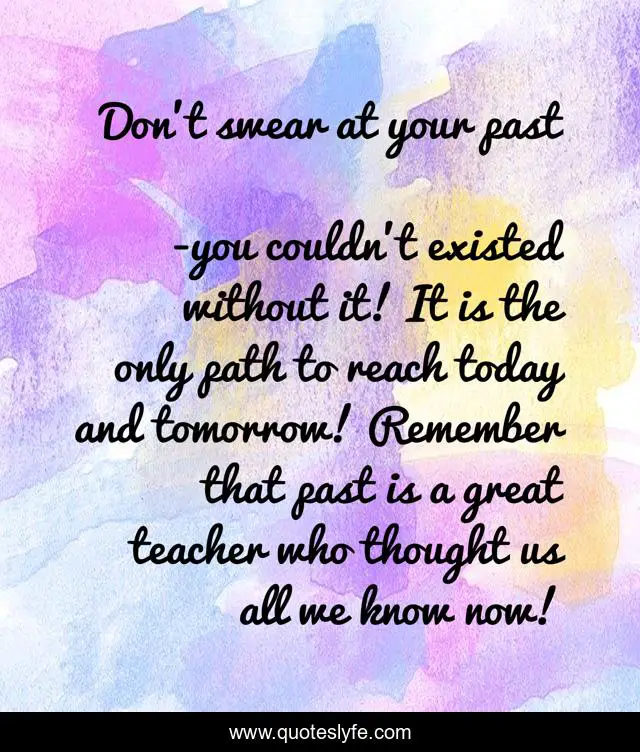 "you couldn’t existed without it! It is the only path to reach today and tomorrow! Remember that past is a great teacher who thought us all we know now! Quotes." Quoteslyfe.com, 2025. Tue. 09 Dec. 2025. <https://www.quoteslyfe.com/quote/Don-t-swear-at-your-past-143430>.