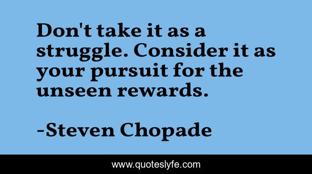 This page presents the quote "Don't take it as a struggle. Consider it as your pursuit for the unseen rewards.". Author of this quote is Steven Chopade. .
