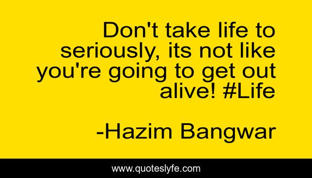 This page presents the quote "Don't take life to seriously, its not like you're going to get out alive! #Life". Author of this quote is Hazim Bangwar. .