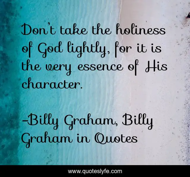 This page presents the quote "Don’t take the holiness of God lightly, for it is the very essence of His character.". Author of this quote is Billy Graham, Billy Graham in Quotes. This quote is about billy-graham, holiness,.