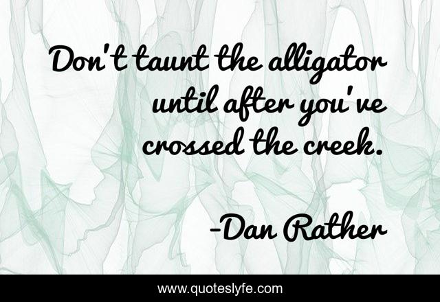 This page presents the quote "Don't taunt the alligator until after you've crossed the creek.". Author of this quote is Dan Rather. This quote is about crossed, creek,.