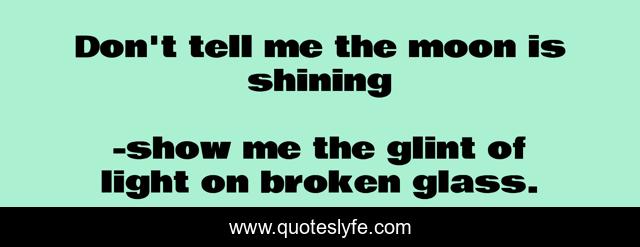 "show me the glint of light on broken glass. Quotes." Quoteslyfe.com, 2025. Sat. 06 Dec. 2025. <https://www.quoteslyfe.com/quote/Don-t-tell-me-the-moon-is-26720>.