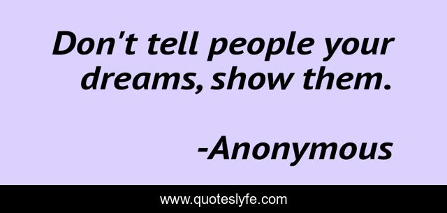 This page presents the quote "Don't tell people your dreams, show them.". Author of this quote is Anonymous. .