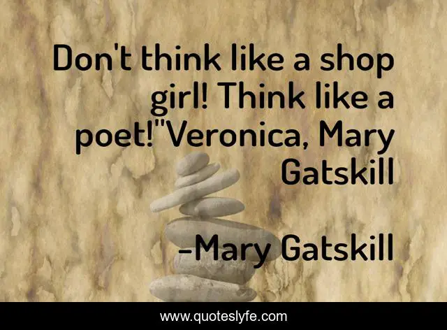 This page presents the quote "Don't think like a shop girl! Think like a poet!"Veronica, Mary Gatskill". Author of this quote is Mary Gatskill. .