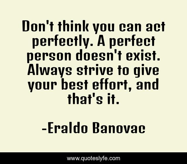 This page presents the quote "Don't think you can act perfectly. A perfect person doesn't exist. Always strive to give your best effort, and that's it.". Author of this quote is Eraldo Banovac. This quote is about perfect-person, sociology, perfection, inspirational, enthusiasm, philosophy-of-life, effort, persistence,.