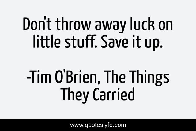 "Tim O'Brien, The Things They Carried Quotes." Quoteslyfe.com, 2025. Sat. 06 Dec. 2025. <https://www.quoteslyfe.com/quote/Don-t-throw-away-luck-on-little-239594>.