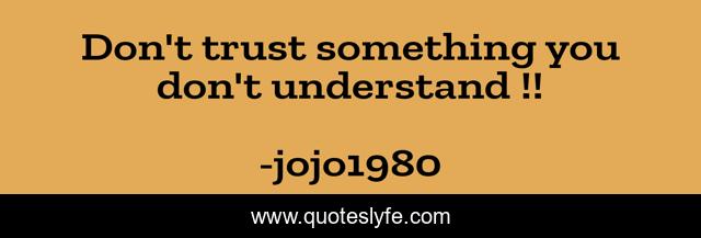 This page presents the quote "Don't trust something you don't understand !!". Author of this quote is jojo1980. This quote is about life-philosophy, advice, trust, truth, philosophy,.