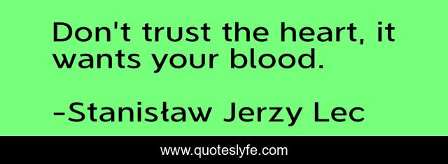 This page presents the quote "Don't trust the heart, it wants your blood.". Author of this quote is Stanisław Jerzy Lec. This quote is about heart, trust, humor, blood, poetry,.