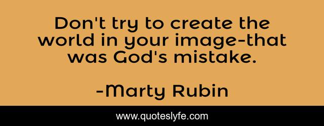 This page presents the quote "Don't try to create the world in your image-that was God's mistake.". Author of this quote is Marty Rubin. This quote is about hubris, subjectivity, ego, vanity,.