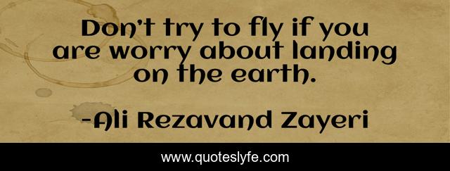 This page presents the quote "Don’t try to fly if you are worry about landing on the earth.". Author of this quote is Ali Rezavand Zayeri. This quote is about success, life-lesson, flying, winning-in-life, goals, life-and-living,.