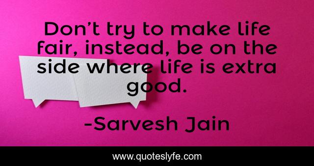 This page presents the quote "Don’t try to make life fair, instead, be on the side where life is extra good.". Author of this quote is Sarvesh Jain. This quote is about confidence, love, author, quote, motivational, emotions, reality, optimistic, inspirational,.