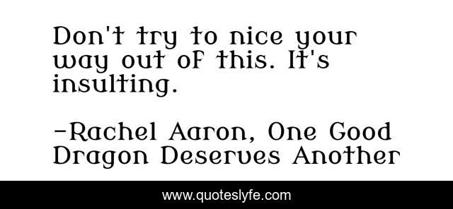 This page presents the quote "Don't try to nice your way out of this. It's insulting.". Author of this quote is Rachel Aaron, One Good Dragon Deserves Another. This quote is about funny, julius, dragons, heartstrikers, comedy, nice,.