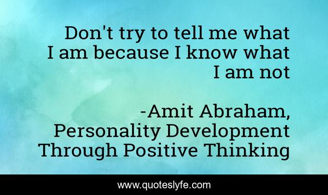 This page presents the quote "Don't try to tell me what I am because I know what I am not". Author of this quote is Amit Abraham, Personality Development Through Positive Thinking. This quote is about self, self-awareness, honesty,.