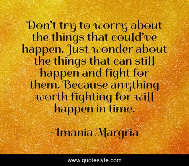 Don't try to worry about the things that could've happen. Just wonder about the things that can still happen and fight for them. Because anything worth fighting for will happen in time.