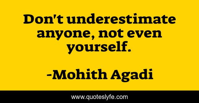 This page presents the quote "Don't underestimate anyone, not even yourself.". Author of this quote is Mohith Agadi. This quote is about life, quote, dont-underestimate, thought, quotes, mohith-agadi, quotes-by-mohith,.