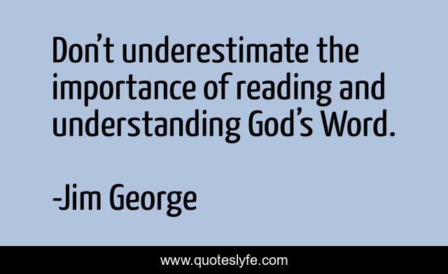 This page presents the quote "Don’t underestimate the importance of reading and understanding God’s Word.". Author of this quote is Jim George. This quote is about god, christianity, jim-george, christian-living, gods-word,.