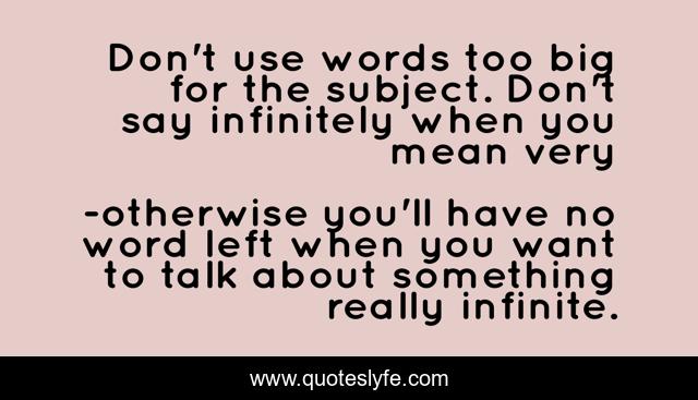 This page presents the quote "Don't use words too big for the subject. Don't say infinitely when you mean very". Author of this quote is otherwise you'll have no word left when you want to talk about something really infinite.. .
