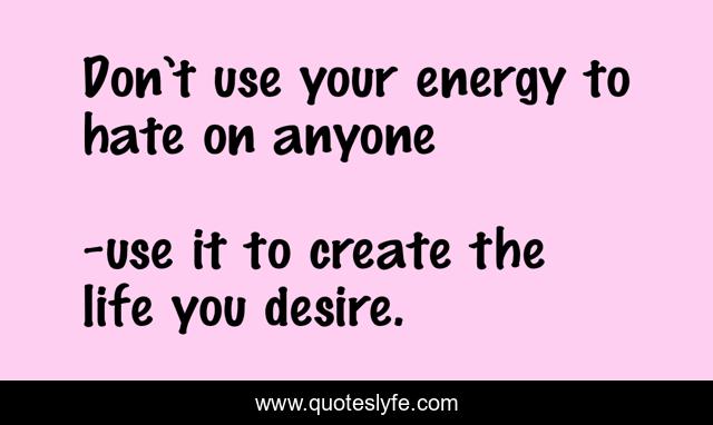 "use it to create the life you desire. Quotes." Quoteslyfe.com, 2025. Sat. 06 Dec. 2025. <https://www.quoteslyfe.com/quote/Don-t-use-your-energy-to-hate-57653>.