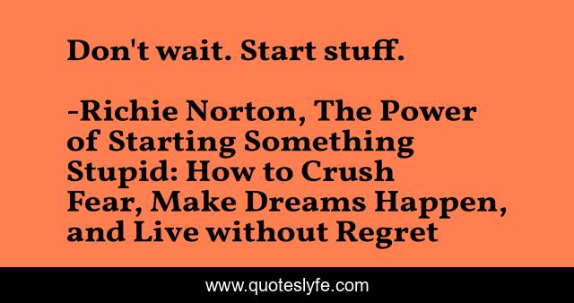 "Richie Norton, The Power of Starting Something Stupid: How to Crush Fear, Make Dreams Happen, and Live without Regret Quotes." Quoteslyfe.com, 2025. Fri. 05 Dec. 2025. <https://www.quoteslyfe.com/quote/Don-t-wait-Start-stuff-215254>.