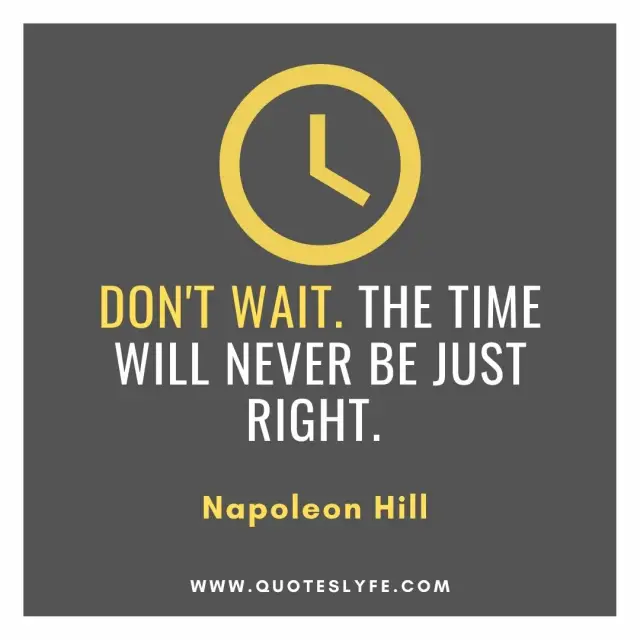 "Napoleon Hill Quotes." Quoteslyfe.com, 2025. Wed. 24 Dec. 2025. <https://www.quoteslyfe.com/quote/Don-t-wait-The-time-will-never-301955>.