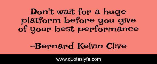 This page presents the quote "Don't wait for a huge platform before you give of your best performance". Author of this quote is Bernard Kelvin Clive. This quote is about hardwork, performance, excellence, public-speaking,.