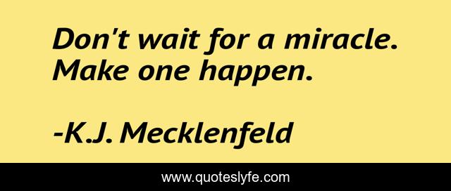 "K.J. Mecklenfeld Quotes." Quoteslyfe.com, 2025. Sat. 06 Dec. 2025. <https://www.quoteslyfe.com/quote/Don-t-wait-for-a-miracle-Make-133654>.