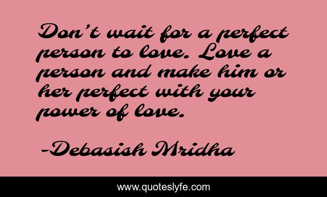 This page presents the quote "Don’t wait for a perfect person to love. Love a person and make him or her perfect with your power of love.". Author of this quote is Debasish Mridha. This quote is about perfect-person, oscar-wilde, philosophy, debasish-mridha, power-of-love, love-someone, quotes, person-to-love, miraboli,.