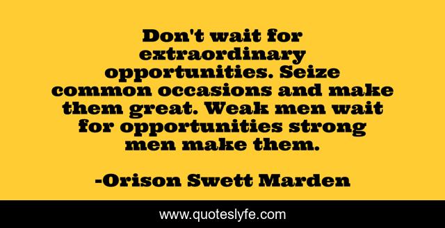 This page presents the quote "Don't wait for extraordinary opportunities. Seize common occasions and make them great. Weak men wait for opportunities strong men make them.". Author of this quote is Orison Swett Marden. This quote is about great, strong, men,.