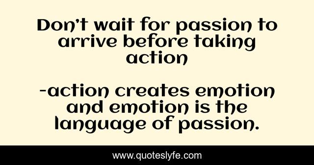 This page presents the quote "Don’t wait for passion to arrive before taking action". Author of this quote is action creates emotion and emotion is the language of passion.. .