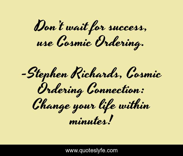 "Stephen Richards, Cosmic Ordering Connection: Change your life within minutes! Quotes." Quoteslyfe.com, 2025. Fri. 05 Dec. 2025. <https://www.quoteslyfe.com/quote/Don-t-wait-for-success-use-Cosmic-16976>.