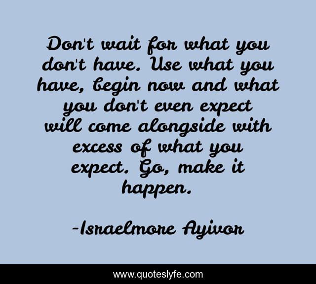 "Israelmore Ayivor Quotes." Quoteslyfe.com, 2025. Fri. 05 Dec. 2025. <https://www.quoteslyfe.com/quote/Don-t-wait-for-what-you-don-129892>.