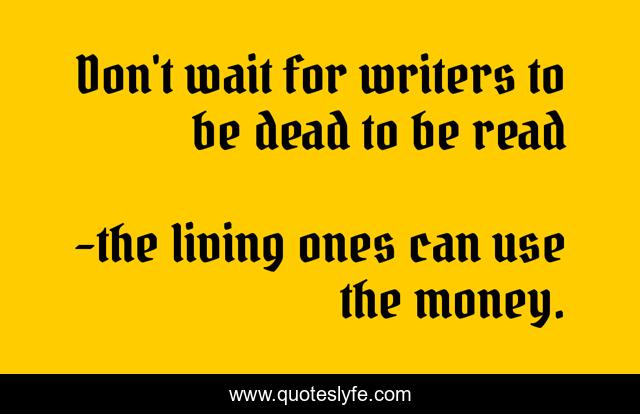 "the living ones can use the money. Quotes." Quoteslyfe.com, 2025. Fri. 05 Dec. 2025. <https://www.quoteslyfe.com/quote/Don-t-wait-for-writers-to-be-151102>.