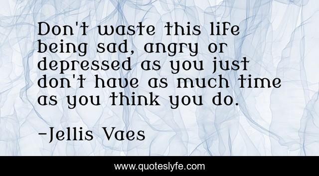 This page presents the quote "Don't waste this life being sad, angry or depressed as you just don't have as much time as you think you do.". Author of this quote is Jellis Vaes. This quote is about life-lesson, life, life-and-living, life-lessons,.