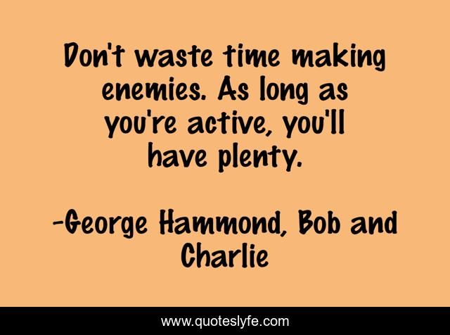 "George Hammond, Bob and Charlie Quotes." Quoteslyfe.com, 2025. Fri. 05 Dec. 2025. <https://www.quoteslyfe.com/quote/Don-t-waste-time-making-enemies-As-130793>.