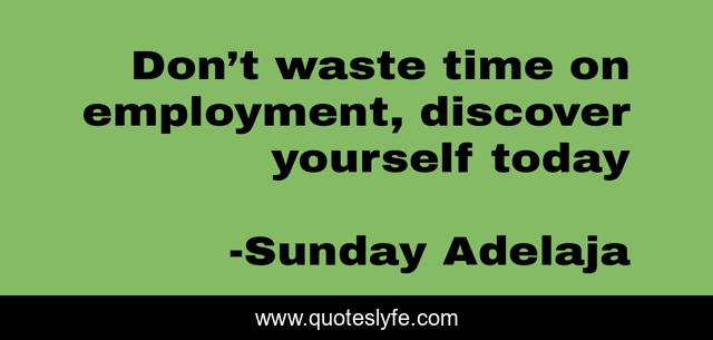 This page presents the quote "Don’t waste time on employment, discover yourself today". Author of this quote is Sunday Adelaja. This quote is about love, people, money, principles, employment, worship, jobless, service, god,.