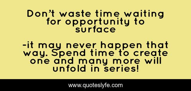 "it may never happen that way. Spend time to create one and many more will unfold in series! Quotes." Quoteslyfe.com, 2025. Sat. 06 Dec. 2025. <https://www.quoteslyfe.com/quote/Don-t-waste-time-waiting-for-opportunity-129312>.