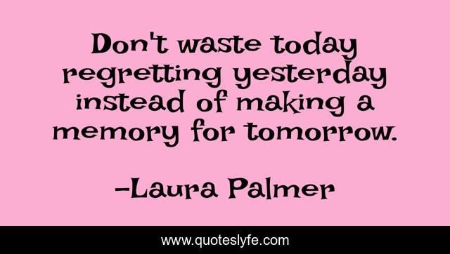This page presents the quote "Don't waste today regretting yesterday instead of making a memory for tomorrow.". Author of this quote is Laura Palmer. .