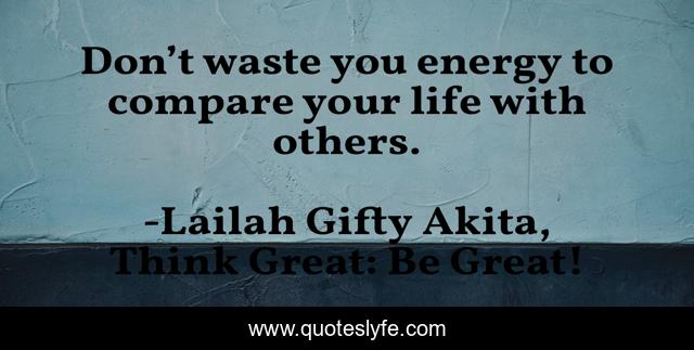 "Lailah Gifty Akita, Think Great: Be Great! Quotes." Quoteslyfe.com, 2025. Mon. 08 Dec. 2025. <https://www.quoteslyfe.com/quote/Don-t-waste-you-energy-to-compare-169114>.