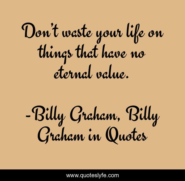 This page presents the quote "Don’t waste your life on things that have no eternal value.". Author of this quote is Billy Graham, Billy Graham in Quotes. This quote is about life, billy-graham,.