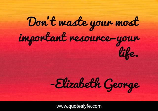This page presents the quote "Don’t waste your most important resource—your life.". Author of this quote is Elizabeth George. This quote is about faith, life, resource, faithful, god, blessed, christian, wonderful, don-t,.