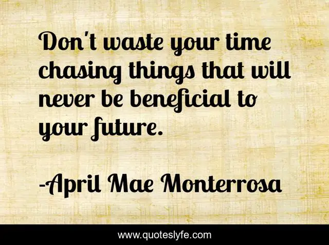 This page presents the quote "Don't waste your time chasing things that will never be beneficial to your future.". Author of this quote is April Mae Monterrosa. This quote is about future, chasing, wasting-time,.