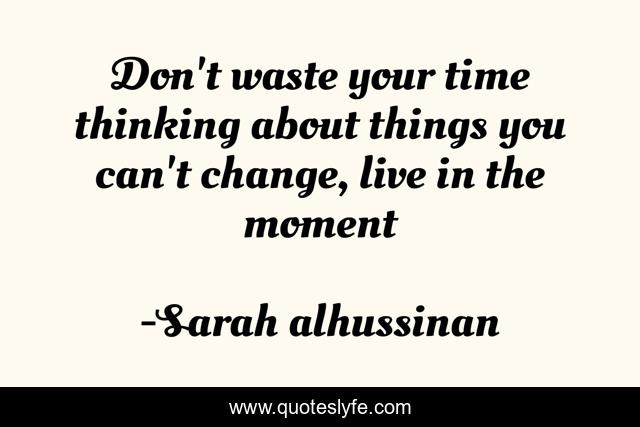 This page presents the quote "Don't waste your time thinking about things you can't change, live in the moment". Author of this quote is Sarah alhussinan. This quote is about life, forget, live-in-the-moment, smile, strong, happiness, happy,.