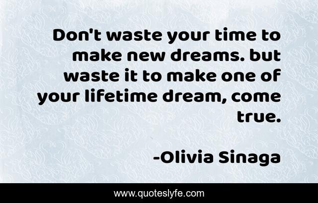 This page presents the quote "Don't waste your time to make new dreams. but waste it to make one of your lifetime dream, come true.". Author of this quote is Olivia Sinaga. This quote is about lifetime, waste, dream, focus,.