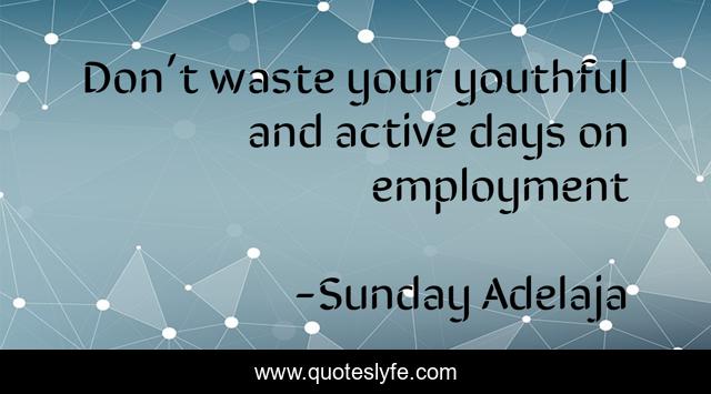 This page presents the quote "Don’t waste your youthful and active days on employment". Author of this quote is Sunday Adelaja. This quote is about love, people, money, principles, employment, worship, jobless, service, god,.