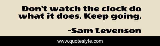 This page presents the quote "Don't watch the clock do what it does. Keep going.". Author of this quote is Sam Levenson. This quote is about keep going, watch, clock,.